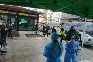 Μεγάλη συμμετοχή των Τρικαλινών στην εκστρατεία του ΕΟΔΥ για rapid test στην κεντρική πλατεία της πόλης.