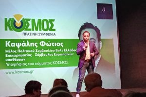 Ο υποψήφιος ευρωβουλευτής με το ΚΟΣΜΟΣ και μέλος του πολιτικού συμβουλίου του ΒΟΛΤ Ελλάδας, Φώτης Καψάλης, συμμετείχε στην εκδήλωση του ΚΟΣΜΟΣ για την...