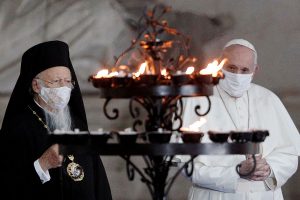 Μάσκα για πρώτη φορά σε δημόσια λειτουργία φόρεσε σήμερα ο Πάπας Φραγκίσκος, κατά την κοινή προσευχή του με άλλους θρησκευτικούς ηγέτες για την επικράτηση της...