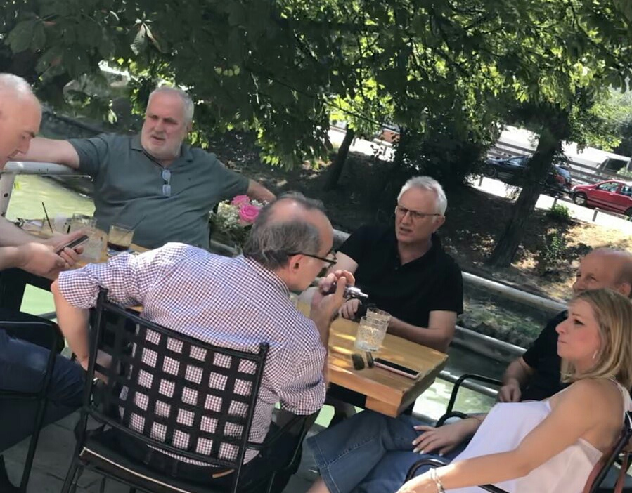 Αυλαία προεκλογικής περιόδου με χαλαρή διάθεση, χαμόγελα και κουβέντα πέραν της πολιτικής το μεσημέρι του Σαββάτου σε γνωστή ταβέρνα των Τρικάλων.