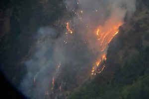 Επικίνδυνη αναζωπύρωση παρατηρείται την τελευταία ώρα στη φωτιά που σιγοκαίει από τη Δευτέρα στην κορυφή Μπουζιάρη πάνω από το δάσος Στουρναρέικων.