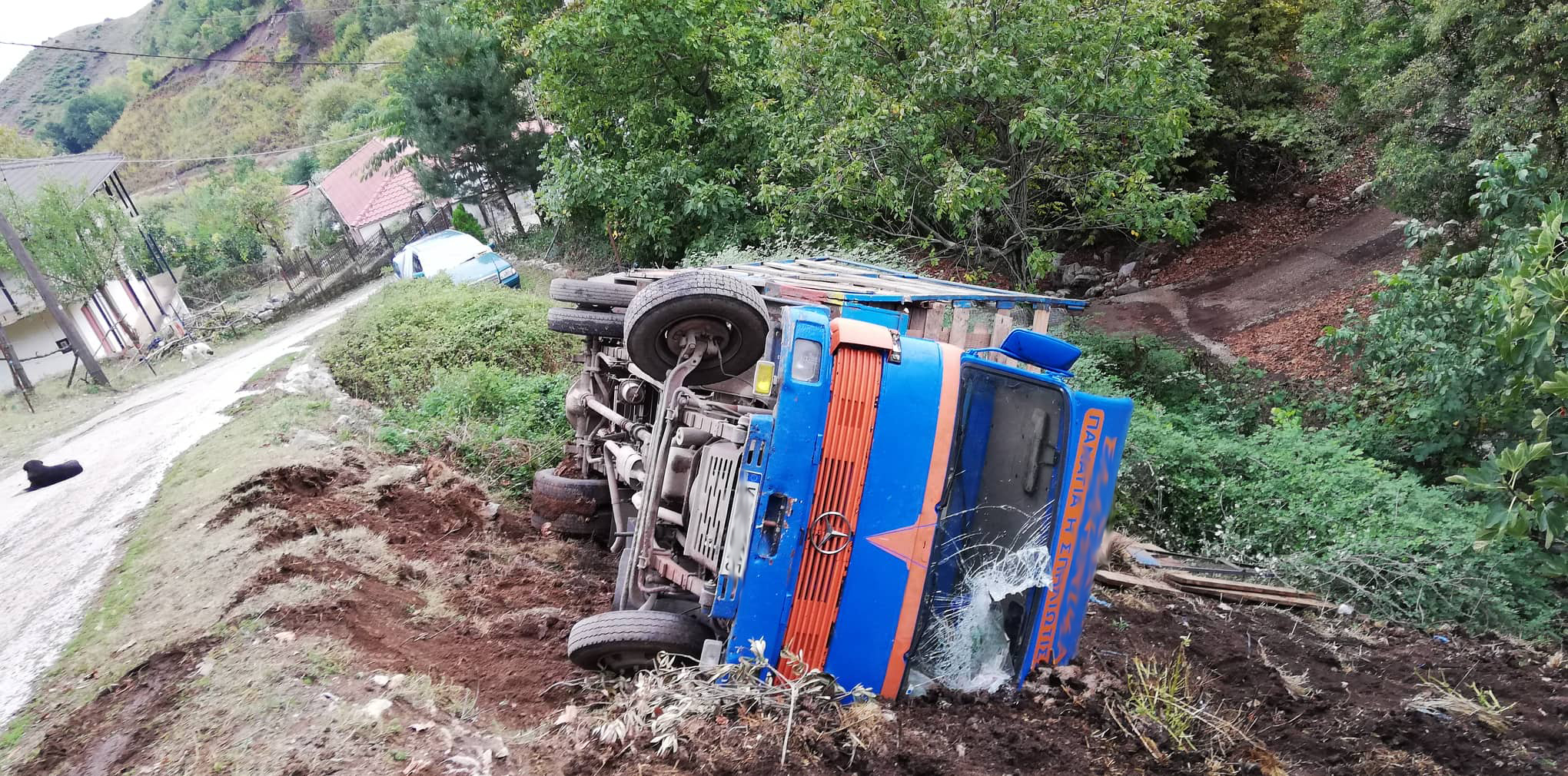 Φορτηγό που μετέφερε ζώα έπεσε σε μικρό γκρεμό το μεσημέρι της Πέμπτης στο Γενέσι.
