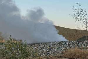 Πυκνοί καπνοί βγαίνουν από την περιοχή του ΧΥΤΑ στην Παλαιοσαμαρίνα.