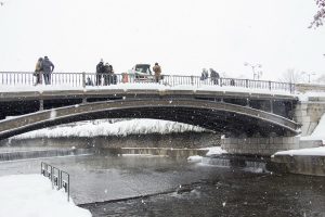 Στα λευκά ντύθηκε από το νωρίς το απόγευμα του Σαββάτου και το κέντρο της πόλης των Τρικάλων.