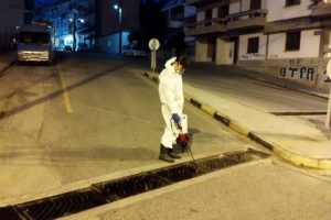Συνεργεία του Δήμου απολύμαναν τον πεζόδρομο της Ασκληπιού και κεντρικούς δρόμους της πόλης.