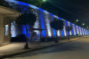 Στα χρώματα της γαλανόλευκης σημαίας φωτίστηκαν απόψε τα τείχη του Φρουρίου Τρικάλων.