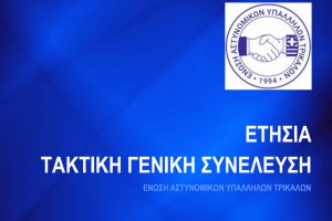 Η ετήσια τακτική γενική συνέλευση πραγματοποιήθηκε την Πέμπτη 01 Ιουνίου στο Δημαρχιακό Μέγαρο Τρικάλων, από την Ένωση Αστυνομικών υπαλλήλων Τρικάλων. Με την...