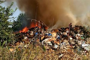 Μεγάλη φωτιά ξέσπασε λίγο μετά τις 6 το απόγευμα της Παρασκευής στις εγκαταστάσεις δίπλα από τον βιολογικό καθαρισμό στο Ριζαριό στα Τρίκαλα.
