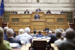 Σε εξέλιξη βρίσκεται στην Ολομέλεια της Βουλής η συζήτηση των πολιτικών αρχηγών για την υπόθεση των παρακολουθήσεων.