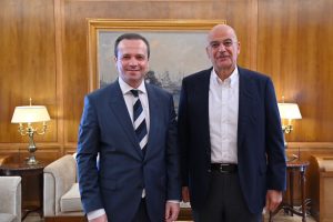 Συνάντηση μεταξύ του Εξοχωτάτου Υπουργού Εξωτερικών της Ελληνικής Δημοκρατίας κ. Νικολάου Δένδια με τον Σεβασμιώτατο Αρχιεπίσκοπο Θυατείρων και Μεγάλης...