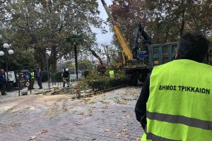 Η γεωπονική υπηρεσία σε συνεργασία με την υπηρεσία καθαριότητας του Δήμου Τρικκαίων προχώρησαν σε άμεση αποκατάσταση στο δέντρο που ξεριζώθηκε στο πάρκο.