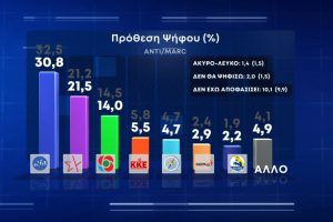 Συνεχίζει η Νέα Δημοκρατία να αποτελεί πρώτη επιλογή – με διψήφια διαφορά – έναντι του ΣΥΡΙΖΑ στην πρόθεση ψήφου, αν και τα ποσοστά εμφανίζονται “ψαλιδισμένα”...