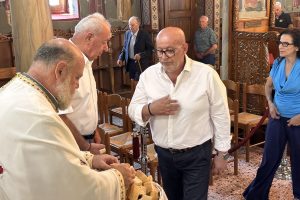 Ευλαβέστατος διακρίνεται κατά τον εκκλησιασμό του ο δήμαρχος της Φαρκαδόνας Σπύρος Αγναντής.