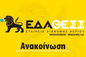 Σας ενημερώνουμε ότι το τεχνικό προσωπικό της ΕΔΑ ΘΕΣΣ, επισκέπτεται το χώρο των καταναλωτών μόνο μετά από προγραμματισμένο ραντεβού, κατόπιν επιβεβαίωσης και...