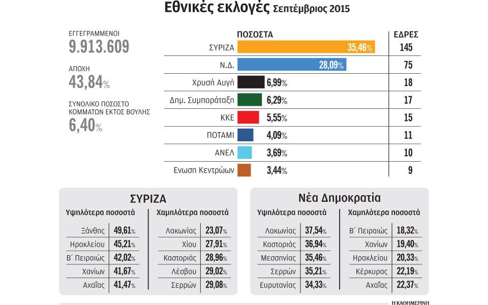 Σταθερή η τριάδα της Ν.Δ. με καταμετρημένα 329 τμήματα από τα 357.