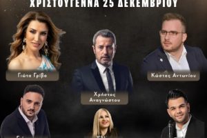 Τα Χριστούγεννα 25/12 διασκεδάζουμε στο Ελιά Loft… παρέα με Γιώτα Γρίβα, Κώστα Αντωνίου και Χρήστο Αναγνώστου, κλαρίνο Ζήσης Τσολακίδης και μπουζούκι...
