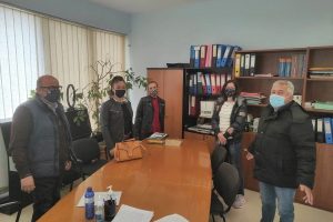 Αντιπροσωπεία στελεχών του ΚΚΕ, αποτελούμενη από του Τάσο Τσιαπλέ, περιφερειακό σύμβουλο Θεσσαλίας, επικεφαλής της Λαικής Συσπείρωσης, την Βάσω Μπακάση...