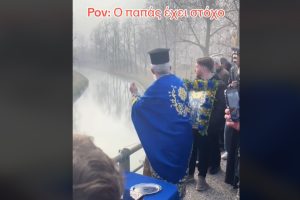 Viral έγινε βιντεάκι που αναρτήθηκε στο Tik Tok από τον Αγιασμό των Υδάτων στη γέφυρα Γκίκα, όπου και ο Σταυρός φεύγει από τα χέρια του παπα Γιώργη Θανάσουλα...