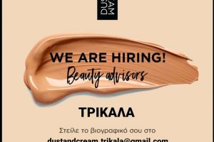 Η ελληνική αλυσίδα καταστημάτων καλλυντικών DUST+CREAM, αναζητά για το κατάστημά της στην οδό Ασκληπιού 5 στα Τρίκαλα, BEAUTY ADVISOR με εμπειρία και πάθος για...