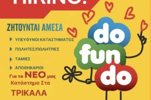 Το DoFunDo ανοίγει στα Τρίκαλα και αναζητά προσωπικό. Κάντε κλικ στην εικόνα παραπάνω για πληροφορίες.