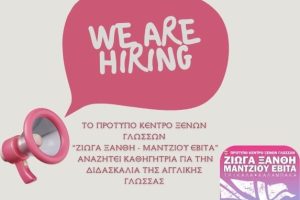 Το Πρότυπο Κέντρο Ξένων Γλωσσών «Ζιώγα Ξανθή – Μάντζιου Εβίτα» μεγαλώνει την ομάδα διδασκαλίας του αναζητώντας καθηγήτρια αγγλικών για την προσεχή...