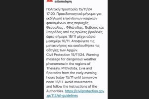 Ήχησε το “112” στα Τρίκαλα και εφιστά σε όλους την Προσοχή στις μετακινήσεις. Εντωμεταξύ από τη Διεύθυνση Πολιτικής Προστασίας της Περιφέρειας...