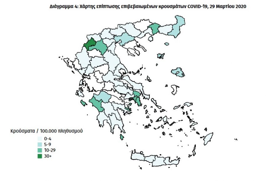 Τον ανανεωμένο χάρτη κατοικίας των επιβεβαιωμένων κρουσμάτων του κορονοϊού έδωσε και σήμερα Κυριακή (29/3) στη δημοσιότητα ο Ε.Ο.Δ.Υ..