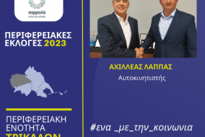 Τον αυτοκινητιστή Αχιλλέα Λάππα, που κατέρχεται υποψήφιος περιφερειακός σύμβουλος στην Π.Ε. Τρικάλων στις αυτοδιοικητικές εκλογές του Οκτωβρίου, καλωσόρισε ο...