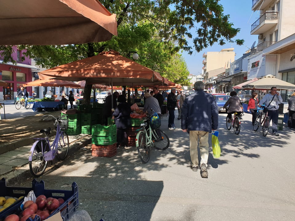 Πρωτόγνωρες εικόνες για… Μεγάλη Δευτέρα στο χώρο που διεξάγεται η λαϊκή αγορά της πόλης.