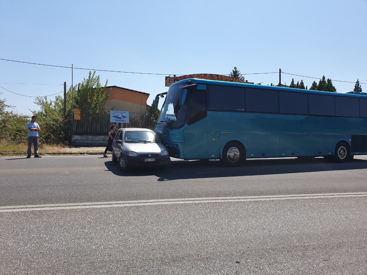 Κάτω από συνθήκες που διερευνώνται συγκρούστηκε λεωφορείο με αυτοκίνητο επί της οδού Λαρίσης το μεσημέρι της Πέμπτης.