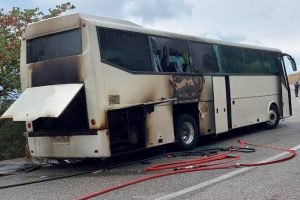 Αναστάτωση το μεσημέρι της Τετάρτης στα Μετέωρα, όταν τυλίχτηκε στις φλόγες σταθμευμένο λεωφορείο έξω από τη Μονή Αγίου Στεφάνου.