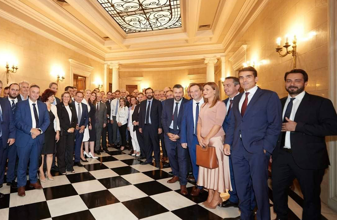 Δεξίωση του πρωθυπουργού προς τιμήν των νεοεκλεγέντων βουλευτών της Ν.Δ., το βράδυ της Δευτέρας.