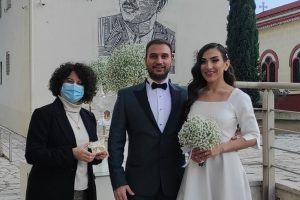 Νεανικός και ωραίος γάμος το μεσημέρι της Πέμπτης στον αύλειο χώρο του Μουσείου Τσιτσάνη.