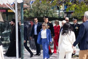 Μακριά από την εξέδρα των επισήμων, μαζί με τον κόσμο, παρακολούθησε την χθεσινή παρέλαση στα Τρίκαλα η Μαρίνα Κοντοτόλη.