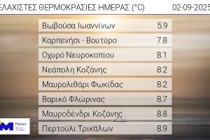 Αρνητικές ελάχιστες θερμοκρασίες σημειώθηκαν τις πρωινές ώρες της Πέμπτης 16/01 σε αρκετές περιοχές κυρίως στα κεντρικά και βόρεια ηπειρωτικά τμήματα, με τη...