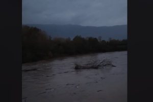 Μεγάλες ποσότητες νερού κατεβάζει ο Πηνειός ποταμός, λόγω των σφοδρών βροχοπτώσεων στα ορεινά.