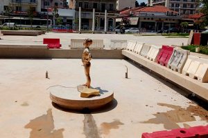 Τελευταίες πινελιές στην κεντρική πλατεία των Τρικάλων, λίγο πριν παραδοθεί στο λαό, 3 ολόκληρα χρόνια μετά την έναρξη των εργασιών.