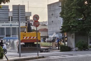 Όλα τα ‘χε… η κλήση από την Τροχαία του ‘λειπε του εργολάβου που έχει αναλάβει την ανάπλαση της κεντρικής πλατείας της πόλης.