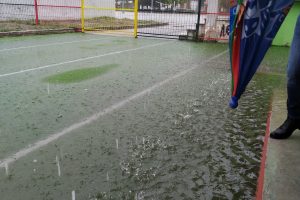 Σε λίμνη μετατράπηκε χθες και ο προαύλιος χώρος του 31ου νηπιαγωγείου Τρικάλων, στο κέντρο της πόλης, επί της οδού Ιάσονος.