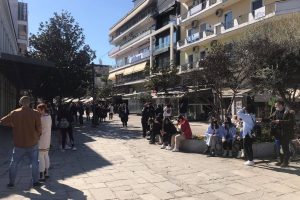 Ανάστατοι οι Τρικαλινοί βγήκαν στους δρόμους μετά τον ισχυρό σεισμό 5,9 Ρίχτερ που σημειώθηκε στις 12.16 μ.μ..