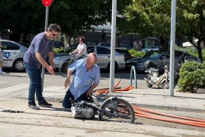 Τραυματίστηκε το πρωί της Παρασκευής στο κέντρο των Τρικάλων, στη γωνία Αθανασίου Διάκου και Κολοκοτρώνη, έγκυος γυναίκα.