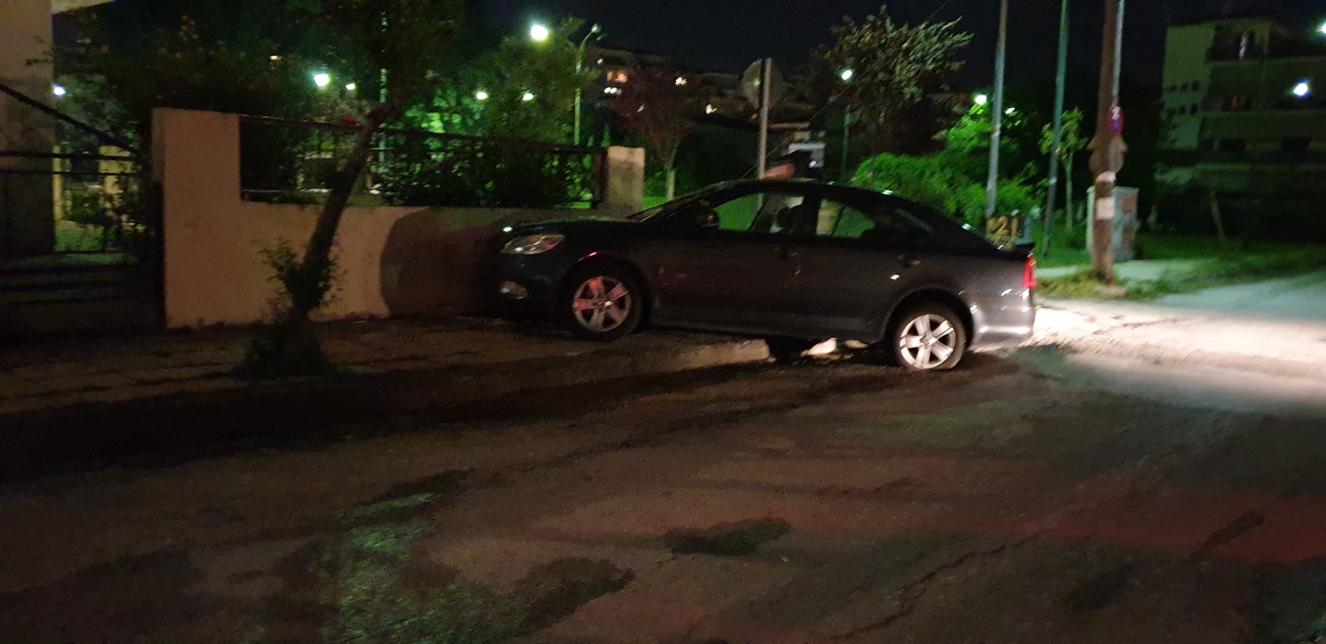 Τρελή πορεία οχήματος που έπεσε πάνω σε σταθμευμένο όχημα.