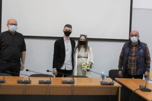 Παρά την δύσκολη εποχή εν μέσω πανδημίας , δύο νέα παιδιά ανέβηκαν το κατώφλι του Δημαρχείου Φαρκαδόνας και παντρεύτηκαν με πολιτικό γάμο .