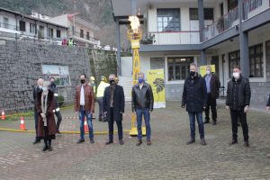 Το απόγευμα της 28ης Δεκεμβρίου μπροστά στον χώρο του Δημαρχείου, με λιτή τελετή, με τήρηση των μέτρων της πανδημίας.