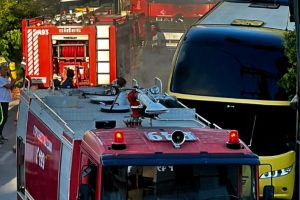 Αναστάτωση το πρωί της Δευτέρας στο τέρμα της οδού Κονδύλη, όταν σταθμευμένο τουριστικό λεωφορείο τυλίχτηκε στις φλόγες.