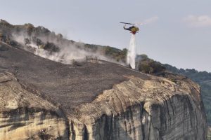 Κατασβήστηκε, με εναέριες ρίψεις νερού από ελικόπτερο η φωτιά που εκδηλώθηκε το μεσημέρι της Πέμπτης στα Μετέωρα.