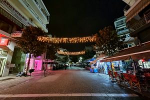 Δίχως τη λάμψη και τα τραγούδια άλλων εποχών άναψε το βράδυ της Τετάρτης το Χριστουγεννιάτικο δέντρο στην πόλη.