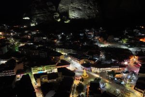 Δείτε τη Χριστουγεννιάτικα στολισμένη Καλαμπάκα και τη μοναδική φάτνη μέσα σε ένα από τα ασκηταριά των ιερών βράχων των Μετεώρων.