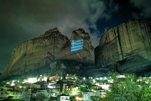 Δείτε μέσα από ένα timeline video καρέ-καρέ τη στιγμή που η γαλανόλευκη ντύνει τους εμβληματικούς βράχους των Μετεώρων.