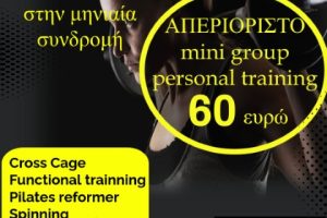 Μηνιαία συνδρομή ΜΟΝΟ με 60 ευρώ στο Athletico Fitness Club. Έχεις την δυνατότητα να κάνεις ΑΠΕΡΙΟΡΙΣΤΟ mini group training. FUNCTIONAL CROSS CAGE REFORMER...